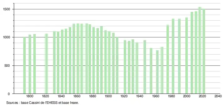 - Fiches Insee - Populations légales de la commune pour les années 2006, 2007, 2008, 2009, 2010, 2011, 2012, 2013, 2014, 2015, 2016, 2017, 2018, 2019, 2020 et 2021.