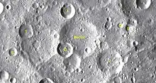 Voici la liste des reliefs de la Lune environnant le cratère[6],[7] :