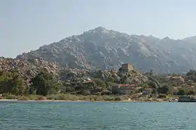 Vue satellite des Beşparmak Dağı (au centre) avec l'extrémité orientale du lac Bafa. | |