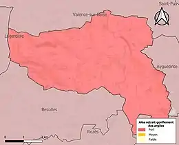 Le retrait-gonflement des sols argileux est susceptible d'engendrer des dommages importants aux bâtiments en cas d’alternance de périodes de sécheresse et de pluie. La totalité de la commune est en aléa moyen ou fort (94,5 % au niveau départemental et 48,5 % au niveau national). Sur les 182 bâtiments dénombrés sur la commune en 2019, 182 sont en aléa moyen ou fort, soit 100 %, à comparer aux 93 % au niveau départemental et 54 % au niveau national. Une cartographie de l'exposition du territoire national au retrait gonflement des sols argileux est disponible sur le site du BRGM[21],[Carte 3].