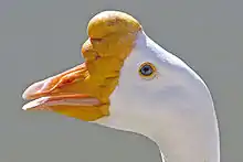 Les narines s'ouvrent toujours à la base du bec, sauf chez les Apterygidae ou Kiwis chez qui elles s'ouvrent à l'extrémité du bec. L'épiderme de la mandibule supérieure (ou maxillaire) s'appelle la rhinothèque[2], celui de la partie inférieure (ou maxille) est la gnathothèque. Le culmen est l'arête dorsale de la mandibule supérieure ; l'arête ventrale de la mandibule inférieure est appelée gonys. La cire du bec est la partie charnue, sans plume, qui recouvre la base du bec. Certaines espèces présentent sur le bec un renflement, comme chez les oies de Chine, appelé caroncule.