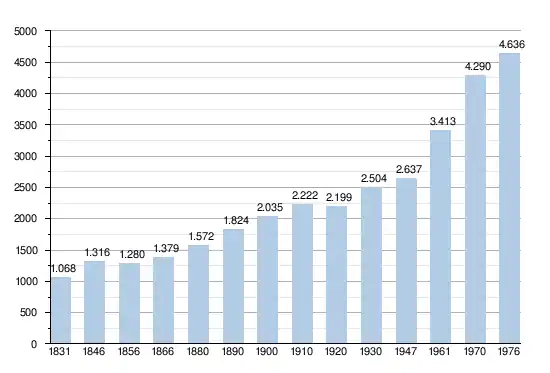 Les chiffres des années 1831 à 1970 tiennent compte des chiffres des anciennes communes fusionnées.