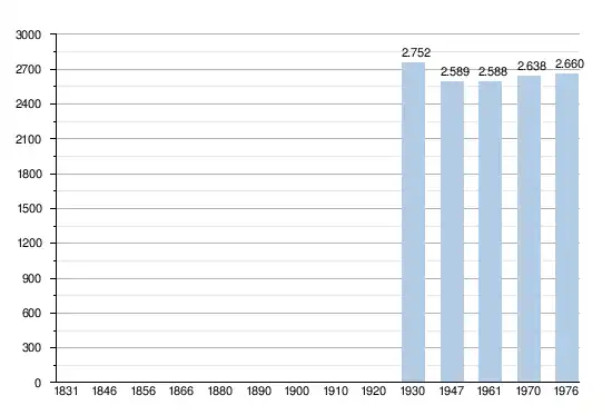 - Sources : INS, Rem. : 1831 jusqu'en 1970 = recensements, 1976 = nombre d'habitants au 31 décembre[2].