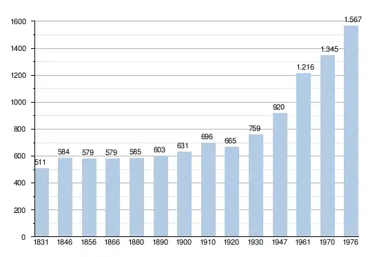 - Sources : INS, Rem. : 1831 jusqu'en 1970 = recensements, 1976 = nombre d'habitants au 31 décembre.
