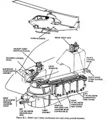| Externe | TOW, Hellfire, AIM-9 Sidewinder et paniers à roquettes Hydra-70 | |