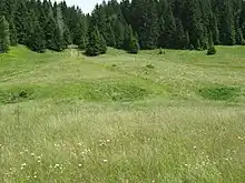 L'occupation des sols de la commune, telle qu'elle ressort de la base de données européenne d’occupation biophysique des sols Corine Land Cover (CLC), est marquée par l'importance des forêts et milieux semi-naturels (54,3 % en 2018), une proportion identique à celle de 1990 (54,3 %). La répartition détaillée en 2018 est la suivante : forêts (51,9 %), prairies (45,8 %), milieux à végétation arbustive et/ou herbacée (2,4 %)[13]. L'évolution de l’occupation des sols de la commune et de ses infrastructures peut être observée sur les différentes représentations cartographiques du territoire : la carte de Cassini (XVIIIe siècle), la carte d'état-major (1820-1866) et les cartes ou photos aériennes de l'IGN pour la période actuelle (1950 à aujourd'hui)[Carte 1].
