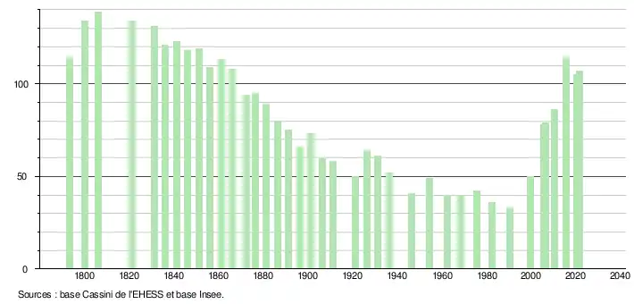 | Rang de la commune dans le département | 540 | 578 | 563 | 553 | 508 | 506 | 498 | 478 |