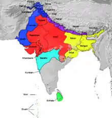 Certains arguent que les points de divergences ont eu lieu beaucoup plus tôt — même avant 500[12] — mais la langue n’était pas stable et fixée : différentes variétés coexistaient et les auteurs écrivaient souvent dans plusieurs de ces langues. Par exemple, il semble que le prakrit magadhi ait évolué en apabhramsa abahatta autour du VIe siècle, en concurrence avec le bengali pendant un certain temps[13].