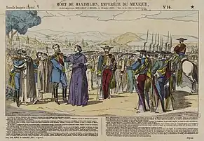 Finalement encerclé à Querétaro avec les généraux conservateurs Mejía et Miguel Miramón, l'empereur Maximilien doit se rendre. Peut-être trahi par certains de ses proches, Maximilien fut arrêté, condamné à mort par une cour martiale et exécuté le .