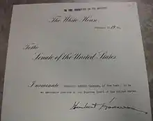 Cardozo est confirmé par un vote unanime au Sénat le 24 février[16]. Lors d'une émission de radio le , le jour de la confirmation de Cardozo, Clarence C. Dill, sénateur démocrate de Washington, qualifie la nomination de Cardozo par Hoover de « plus bel acte de sa carrière en tant que président »[17]. L'ensemble du corps professoral de la faculté de droit de l'Université de Chicago exhorte Hoover à nommer Cardozo, tout comme les doyens des facultés de droit de Harvard, Yale et Columbia. Le juge Harlan Fiske Stone exhorte fortement Hoover à nommer Cardozo, proposant même de démissionner pour lui faire de la place si Hoover pensait à quelqu'un d'autre (Stone avait suggéré à Calvin Coolidge de nommer Cardozo en 1925 avant Stone). Hoover hésite à l'origine; il est préoccupé par le fait qu'il y a déjà deux juges de New York et un juif sur le terrain. Le juge James McReynolds est connu comme un antisémite notoire. Cependant, lorsque le président de la commission des relations extérieures du Sénat, William E. Borah de l'Idaho, ajoute son ferme soutien à Cardozo, Hoover accède finalement sous la pression. C’est grâce à son prestige que ceux qui sont favorables à sa nomination ont su renverser trois obstacles, qui au début paraissaient insurmontables : il est juif, New-Yorkais et progressiste[10].