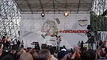 Le , Grillo prononce un discours au Parlement européen dans lequel il parle des nouvelles technologies et de la présence de détenus dans le Parlement italien[14]. Dans le même temps, il annonce l'organisation de rencontres « V-Day », une initiative visant à recueillir des signatures pour la présentation d'une loi populaire concernant les critères et l'admissibilité des candidatures au Parlement, les cas de licenciement et le changement de la loi électorale. Au cours de l'initiative, tenue le dans plusieurs villes italiennes et dans des ambassades italiennes à l'étranger, ont été rassemblées 336 144 signatures[15], qui dépassent de loin les 50.000 requis pour présenter le projet de loi[16].