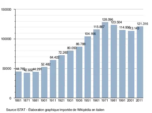 Par sa population, Bergame constitue la quatrième commune de la région, et son aire urbaine compte 481 519 habitants[2], pour un total de 1 100 000 habitants dans la province qui porte le même nom[3].