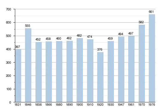 - Sources : INS, Rem. : 1831 jusqu'en 1970 = recensements, 1976 = nombre d'habitants au 31 décembre.