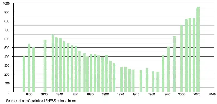 Au dernier recensement de 2021, la commune comptait 961 habitants.