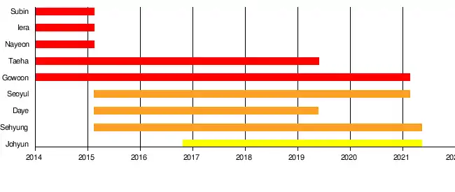 | Daye | 다예 | Kim Hyeon-jeong | 김현정 | Rappeuse secondaire, chant | ||
