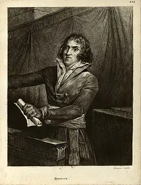 « Portrait de Bertrand Barère de Vieuzac » (Par Jean-Louis Laneuville, huile sur toile, entre 1793 et 1794, conservé à la Kunsthalle de Brême). | ||