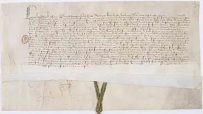 Louis XI, roi de France, rédige en des lettres de grâce en faveur de Bertrand de la Tour. Archives nationales de France.