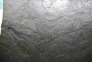 Divers sauroptérygiens sont connus de la formation de Besano[39], incluant les placodontes durophages Cyamodus et Paraplacodus[40] et les pachypleurosauriens et les nothosauridés. Le pachypleurosaurien Odoiporosaurus est connu du milieu de la formation de Besano, tandis que Serpianosaurus, particulièrement abondant, n'apparait que dans la partie supérieure de la formation, là où les ichtyosaures se font plus rares[41],[34]. Les nothosauridés incluent les genres Silvestrosaurus (en) et Nothosaurus, ce dernier incluant notamment N. giganteus et possiblement N. juvenilis[39]. Bien que rare, N. giganteus pourrait avoir été un superprédateur comme Cymbospondylus[3]. En dehors des ichthyosaures et des sauroptérygiens, les autres reptiles marins incluent les thalattosauriens Askeptosaurus, Clarazia et Hescheleria[42] en plus du semi-aquatiques à long cou Tanystropheus[43],[34].