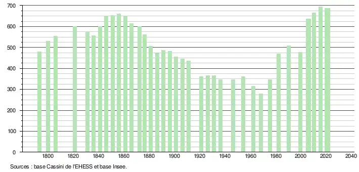 (Sources : Ldh/EHESS/Cassini jusqu'en 1999[15] puis Insee à partir de 2006[16].)