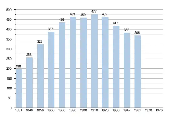 - Sources:INS, Rem:1831 jusqu'en 1970=recensements, 1976= nombre d'habitants au 31 décembre