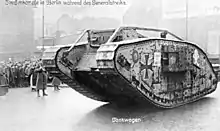 Le char de combat a été conçu par les Alliés français et britanniques durant la Première Guerre mondiale pour percer les lignes allemandes. Le secret de cette nouvelle arme a été préservé le plus longtemps possible. Ainsi, les Britanniques les désignaient tanks (réservoirs) afin de dissimuler aux espions allemands à quoi allaient réellement servir les milliers de plaques d’acier utilisées pour leur fabrication. Lorsque ces engins sont apparus sur le front en 1916, ce fut une complète surprise pour les Allemands qui n’avaient rien d’équivalent à leur opposer. Seuls des tirs directs d’artillerie parvenaient à les détruire. Cependant ces engins encore primitifs souffraient de nombreuses pannes, et un grand nombre de tanks britanniques (le plus souvent des Mark IV) tombèrent intacts aux mains des Allemands. Ceux-ci lancèrent leur propre programme de fabrication de char d'assaut (les A7V[1]). Dans l’immédiat, les blindés capturés furent repeints aux couleurs allemandes (camouflage et marques de nationalité « croix de fer » noire) et ceux réutilisés au front rassemblés en escadrons nommés divisions de chars lourd au sein du Schwere Kampfwagen-Abteilung (de)[2]. Fin , ces unités rassemblaient 35 blindés déclarés prêts au combat dans sept escadrons sur 170 en état de marche, soit plus que les blindés de production nationale : seulement 20 ou 21 A7V avaient été construits[3] dont 15 étaient dans trois escadrons au front.