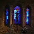 - L'église Saint-Hélier (XIIIe, XVIe, XVIIIe et XIXe)[30]. Cette église est dédiée à saint Hélier (moine du VIe siècle originaire de Tongres en Belgique qui devint ermite à Jersey et donna son nom à la principale ville de l'île). Restauré à partir des années 1960 à l'initiative de son doyen, le chanoine Leprieur, cet édifice du XIIe siècle possède notamment une collection complète de vitraux dus au maître verrier François Décorchemont, plusieurs statues de Josette Hébert-Coëffin ainsi qu'un orgue moderne par le facteur Haerpfer-Erman. Un élément assez rare est, au chevet, un pignon en colombage.