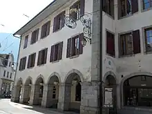 Ancien Hôtel de l'Union. Appelé l'Hôtel de l'Ours avant l'indépendance vaudoise en 1798[24].