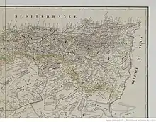 La province de Constantine avait un vaste territoire[1], elle est bornée au nord par la Méditerranée, et au sud par le désert, à l'est par la régence de Tunis et à l'ouest par le Beylik du Titteri, séparé par la chaîne des Bibans dans la partie septentrionale[2].