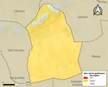 Le retrait-gonflement des sols argileux est susceptible d'engendrer des dommages importants aux bâtiments en cas d’alternance de périodes de sécheresse et de pluie. 95,8 % de la superficie communale est en aléa moyen ou fort (67,5 % au niveau départemental et 48,5 % au niveau national). Sur les 863 bâtiments dénombrés sur la commune en 2019, 806 sont en aléa moyen ou fort, soit 93 %, à comparer aux 90 % au niveau départemental et 54 % au niveau national. Une cartographie de l'exposition du territoire national au retrait gonflement des sols argileux est disponible sur le site du BRGM[27],[Carte 2].