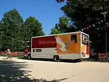 La fondation Bibliomedia, créée en 1920, est un organisme qui, sur mandat de la Confédération, œuvre pour l’éveil au livre, la promotion de la lecture et de la littérature de fiction romande et le développement des bibliothèques de lecture publique[33]. Grâce à l’aide de Bibliomedia[34], deux petits véhicules du type bibliobus ont vu le jour : Bibliomobile et Bain de livres/Bücherbad.