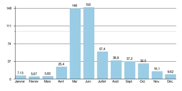 | Débit moyen | 44,4 m3/s (Malaïa Siïa) à 124 km de la confluence |