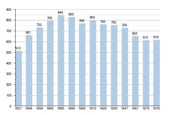 - Sources:INS, Rem:1831 jusqu'en 1970=recensements, 1976= nombre d'habitants au 31 décembre