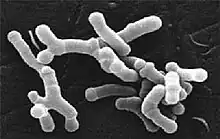 Bifidobacterium (espèce type Lactobacillus bifidus) est un bacille à gram positif, immobile, avec une morphologie ramifiée. Ce genre bactérien est physiologiquement proche des actinomycètes[11]. Elles peuvent être isolées, associées en longues chaînes ou en amas. Les bactéries peuvent être courtes, régulières, fines avec des extrémités effilées, ovoïdes ou longues et légèrement courbées. Elles peuvent aussi former des protubérances et toutes sortes de ramifications. Les extrémités peuvent être légèrement fourchues ou spatulées.
