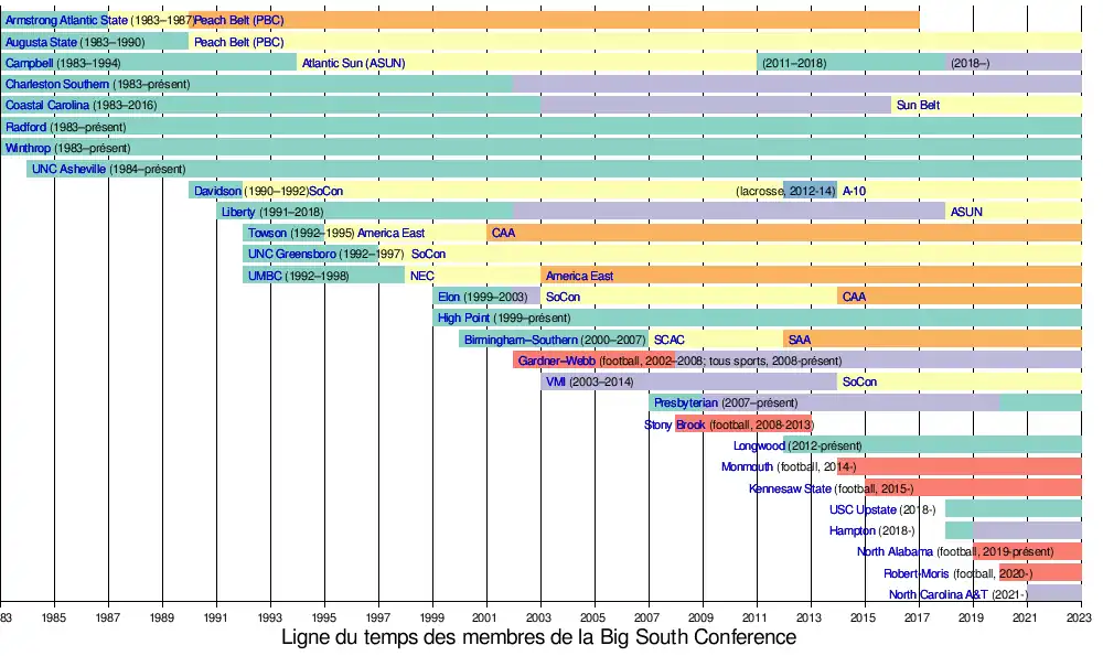- Big South Conference, « Big South Conference History », sur bigsouthsports.com, Big South Sports,