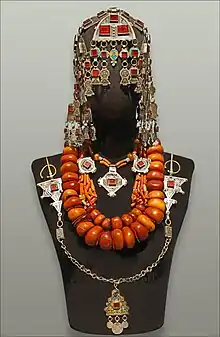 Les bijoux berbères (en langue tamazight : ⵉⵇⵇⵛⵓⵛⵏ ⵉⵎⴰⵣⵉⵖⵏ ; ABL : iqqcucn imaziɣn) sont un style historique de bijoux traditionnels qui étaient portés par les femmes, principalement dans les zones rurales de l'Afrique du Nord habitées par des peuples autochtones berbères (en berbère : Amazigh au singulier, Imazighen au pluriel). Suivant de longues traditions sociales et culturelles, les orfèvres, berbères ou autres, au Maroc, en Algérie et dans les pays voisins ont créé des bijoux complexes avec des variations régionales distinctes. Dans de nombreuses villes et villages, il y avait des orfèvres juifs, qui produisaient à la fois des bijoux dans des styles berbères spécifiques ainsi que dans d'autres styles, en s'adaptant à l'évolution des techniques et aux innovations artistiques[1].