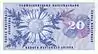 20 francs | 88 × 141 mm | Brun et bleu | Fribourgeoise | Ornements et rosace | Billet de réserve |