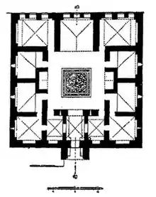 L'organisation des grands hôpitaux syriens et égyptiens des XIIe et XIIIe siècles est la mieux connue. Le plan de base est un plan cruciforme avec quatre iwan (salles voûtées) centrées sur une cour intérieure, et de nombreuses salles adjacentes : cuisine, pharmacie, mosquée, logement pour le personnel, bibliothèque[12],[8].