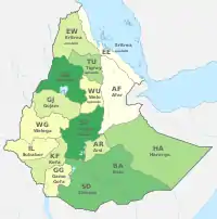 Depuis les travaux d'Alfred Russel Wallace en 1876, le continent africain est divisé en deux domaines biogéographiques majeurs : l'Afrotropique (appelé « domaine éthiopien » par Wallace) et le Paléarctique, qui comprend aussi la majeure partie de l'Eurasie. Les deux domaines, ou « écozones », sont séparés par l'immense désert du Sahara, qui constitue une barrière naturelle majeure à la migration des espèces[5]. L'Éthiopie est entièrement située dans la zone afrotropicale, bien qu'une petite partie de sa faune et de sa flore soit d'origine paléarctique. Au XXIe siècle, le Fonds mondial pour la nature (WWF) a proposé une division des terres émergées du globe terrestre en « écorégions », définies comme des unités contenant un assemblage distinct d'espèces et dont les limites se rapprochent de l'étendue originelle des communautés naturelles avant l'anthropisation[6]. Pour l'Afrique, cette catégorisation se base principalement sur les travaux de classement de la végétation de Frank White (voir infra). Le territoire national éthiopien s'étend principalement sur six de ces régions écologiques et englobe des portions marginales de cinq autres. Les onze écorégions représentent cinq des quatorze biomes de la planète et montrent un niveau de distinction biologique (richesse en espèces animales et végétales, taux d'endémisme) remarquablement élevé (voir infra). Près de 90 % du territoire éthiopien appartient à la biorégion de la Corne de l'Afrique, un assemblage géographique qui présente de fortes affinités au niveau de la faune et la flore. L'Éthiopie est enfin au centre de deux points chauds de biodiversité, sélectionnés à la fois pour leur richesse biologique et pour le fait d'avoir déjà perdu une part importante de leurs habitats : la Corne de l'Afrique et les Montagnes d'Afrique orientale et d'Arabie[7].