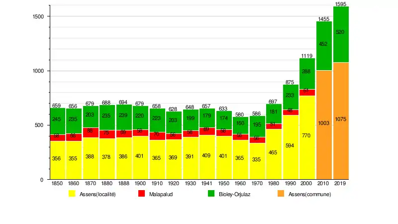 Le , les communes de Bioley-Orjulaz et d’Assens fusionnent portant le nombre d’habitants des trois localités à un peu plus de 1700.