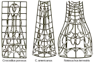 Figure 1: Transformation de la structure de différentes espèces de crocodiles par D'Arcy Thompson