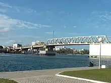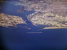 La France entreprend très tôt, en 1886, la construction d'un grand port du fait du rôle stratégique de la ville sur le canal de Sicile avec le creusement du chenal qui n'est achevé qu'en 1892 ; ce canal est creusé pour relier la mer Méditerranée au lac de Bizerte où est aménagée une rade. L'aménagement du port s'accélère notamment sous l'impulsion de l'amiral Gustave Besnard (ministre de la Marine) et du capitaine de vaisseau Joseph-Henri Merleaux-Ponty dans les années 1897-1898, avec la montée de la tension entre la France et le Royaume-Uni pendant la crise de Fachoda[16]. À une vingtaine de kilomètres plus au sud, de l'autre côté du lac, est fondée la cité de Ferryville, appelée de nos jours Menzel Bourguiba ainsi que l'arsenal de la marine de guerre française dit de Sidi-Abdallah. Sous le protectorat français, la ville croît rapidement : la municipalité de Bizerte est créée par le décret du [17]. En 1898, un pont transbordeur est édifié sur le canal pour joindre la ville à la rive sud du canal ; il reste en service jusqu'en 1909.