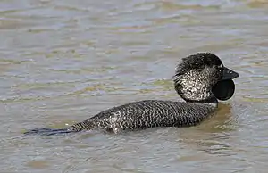 L'Érismature à barbillons (Biziura lobata) est une espèce de canards à queue dressée, originaire du sud de l'Australie, de la famille des anatidés. C'est la seule espèce du genre Biziura. Une espèce apparentée, l'érismature de Nouvelle-Zélande (Biziura delautouri), vivait autrefois en Nouvelle-Zélande mais n'est connue que par ses os fossilisés. Elle était environ 8 % plus grande que l'espèce actuelle, avec une tête particulièrement importante.