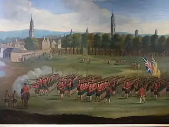Le reste du bataillon rejoignit l'armée coalisée (réunissant des troupes britanniques, hanovriennes et néerlandaises) du duc de Cumberland en Flandres[8] et participa à la bataille de Fontenoy le , notamment à l'assaut contre le centre français, puis aux combats d'arrière-garde. Une compagnie du 43e régiment restée en Écosse assista côté britannique à la bataille de Culloden le , au sein d'un bataillon des Highlands (composé de trois compagnies du 64e, de celle du 43e et de quatre de miliciens du clan Campbell), sans être engagée.