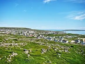 Le village de Blanc-Sablon a été aménagé sur la baie de Blanc-Sablon. Il compte 116 habitants en 2016[10].