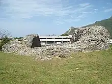 « les fouilles effectuées sur la colline entre la Noce et la Fiumarella ont mis au jour un petit complexe médico-légal, une place entourée de portiques, de boutiques et un bâtiment basilique, doté d'une fontaine publique, de bases pour statues honorifiques et ouvert, à l'ouest, sur trois bâtiments de temple rapprochés. »