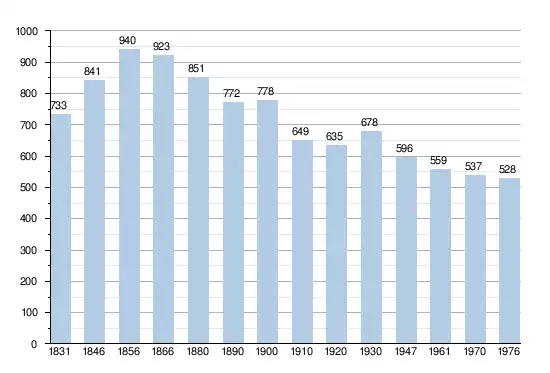 - Sources : INS, Rem. : 1831 jusqu'en 1970 = recensements, 1976 = nombre d'habitants au 31 décembre.