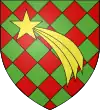 Toutefois, s'il est chargé, les charges se blasonnent comme brochant sur ce champ composé : Losangé de sinople et de gueules à l'étoile d'or anglée, à senestre, d'une queue de comète du même courbée en bande, brochant sur le tout (à droite Lachassagne). De même que précédemment, une pièce honorable peut être de l'un en l'autre, ce qui peut conduire à des motifs géométriques complexes malgré une description relativement simple. |