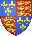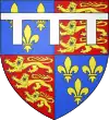 | au deuxième d'azur semé de lys d'or et au lambel de gueules, | (2) Anciennes armes de l'Anjou, sur champ de France ancien. | ![]() |