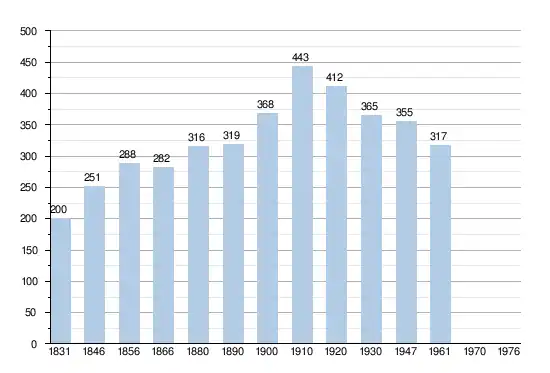 - Sources:INS, Rem:1831 jusqu'en 1970=recensements, 1976= nombre d'habitants au 31 décembre