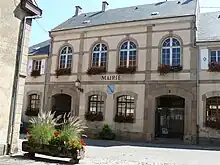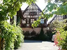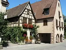 Grande maison centrale qui présente un rez-de-chaussée percé d'arcades de grès. Elle date du début du XVIIe siècle : la date 1602 est gravée dans la pierre. L'ensemble est flanqué d'un porche équipé d'une porte pour piétons. Il se tenait sans doute aussi un petit marché sous les arcades. L'ancienne mairie, détruite dans la deuxième moitié du XIXe siècle, était construite sur le même modèle. Elle abritait sans doute la Laub et la Gemeindestube, citées au XVIIe siècle.